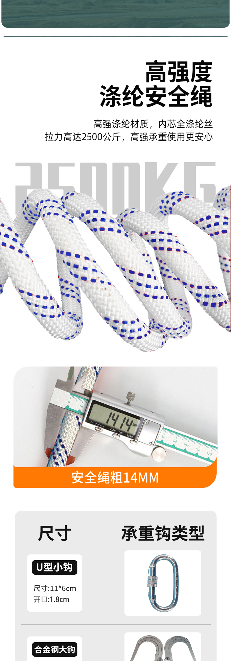 欧式快插护腰护腿无缓冲单大钩2米