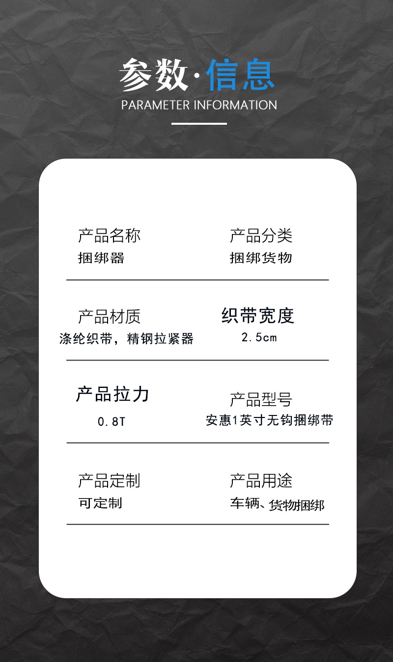 安惠无钩捆绑带1英寸/2.5cm*3m/0.8T(含拉紧器)