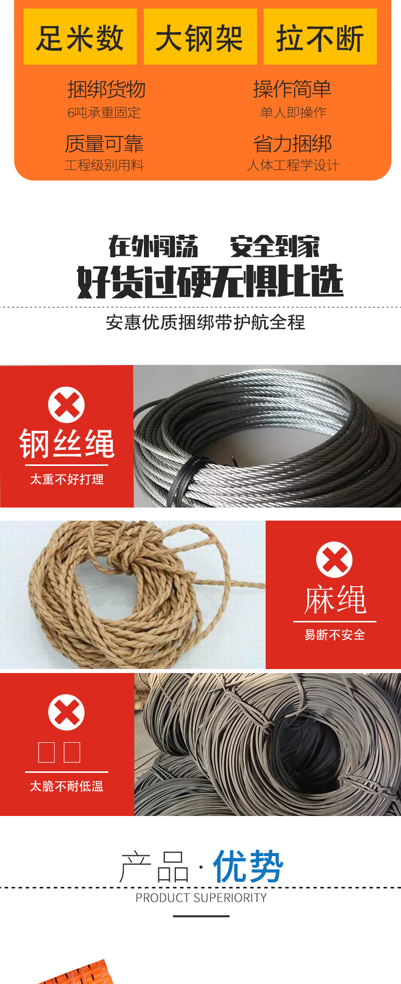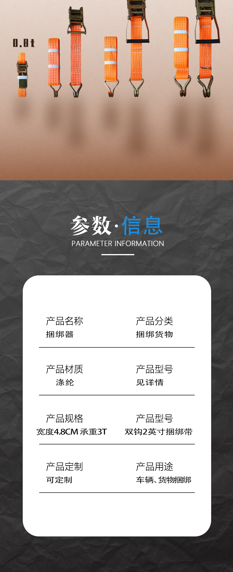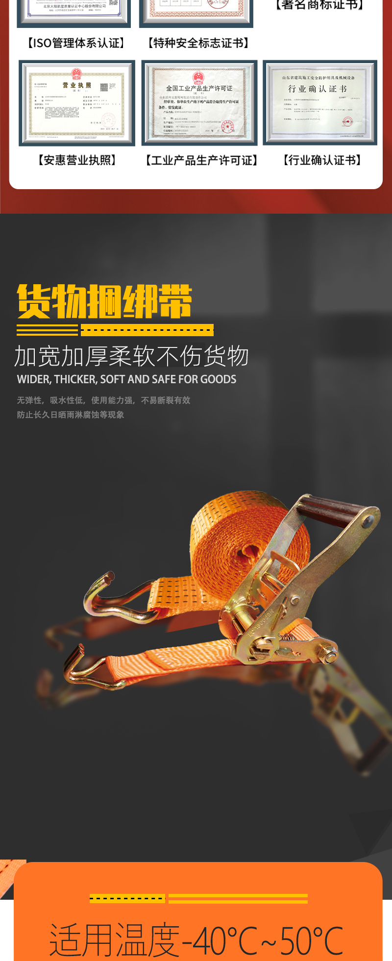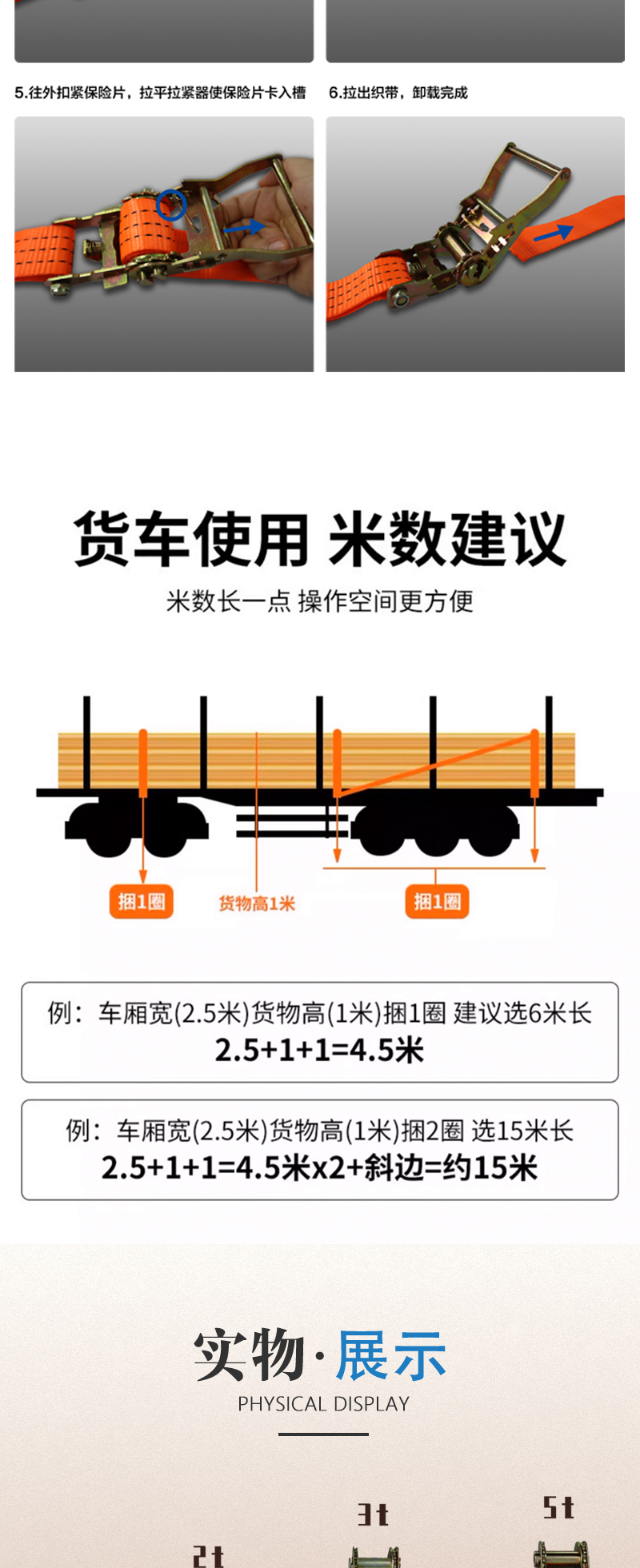 安惠双钩捆绑带2英寸/4.8cm*6m/3T